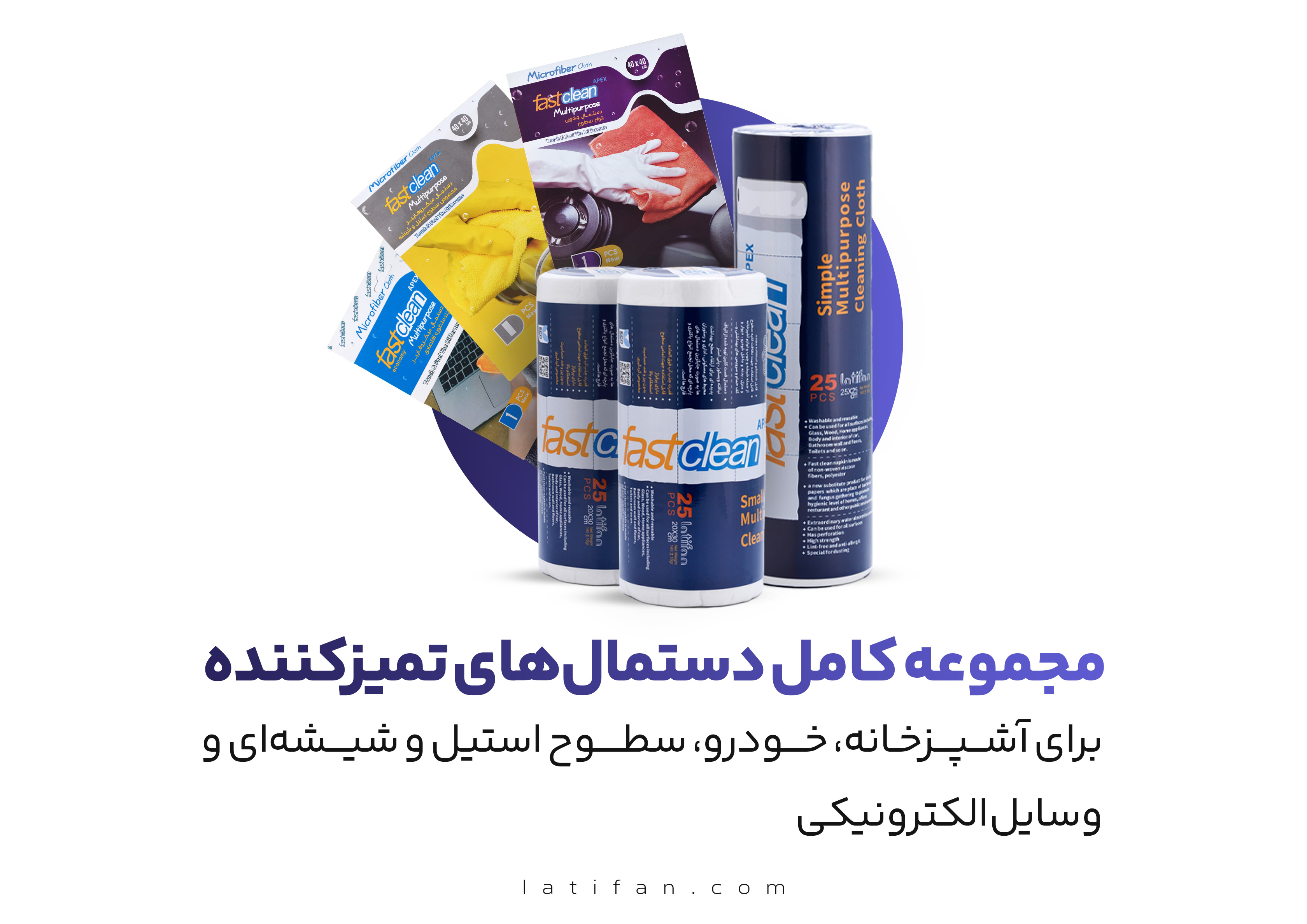 دستمال چندمنظوره کوچک برند FastClean - پک 50 عددی