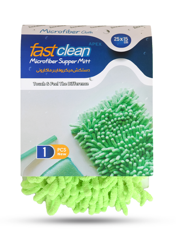 دستکش میکروفایبر ماکارونی برند Fast Clean یک ابزار کاربردی و راحت برای نظافت روزانه است. این دستکش با طراحی خاص به شکل دستکش و بافت ماکارونی، به شما امکان میدهد بدون نیاز به مواد شوینده، انواع سطوح را بهراحتی گردگیری و تمیز کنید. الیاف میکروفایبر آن قدرت جذب بسیار بالایی دارد و میتواند تا ۷ برابر وزن خود آب را نگه دارد، بدون اینکه پرز یا لکهای باقی بگذارد.